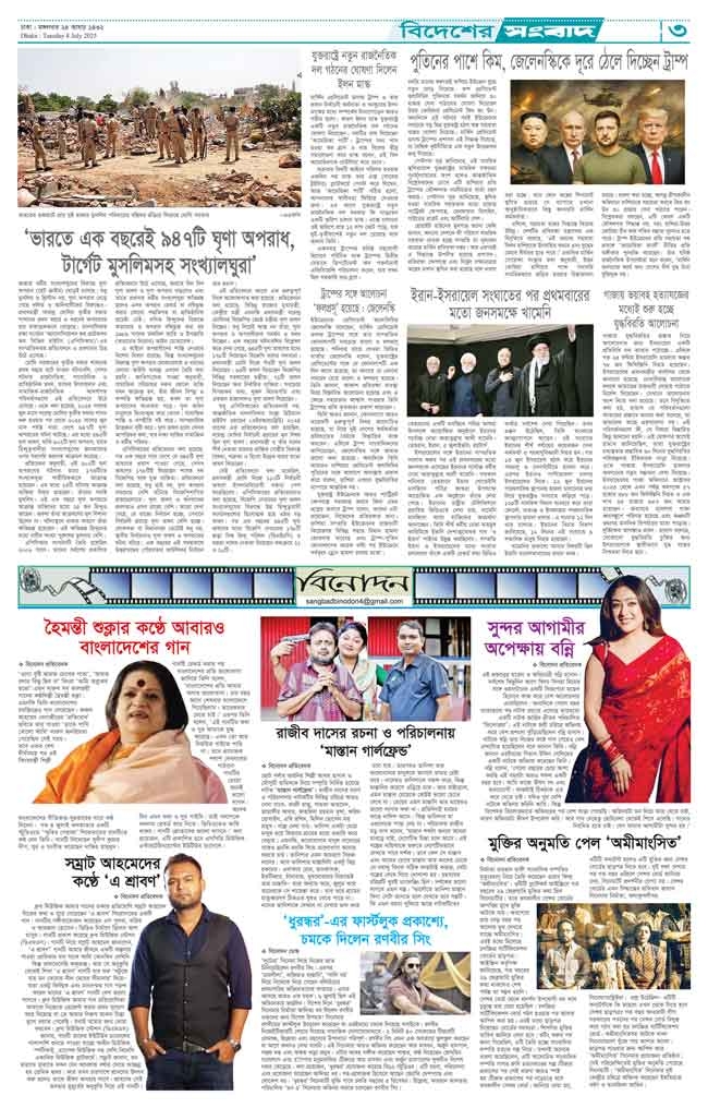 মঙ্গলবার, ০৮ জুলাই ২০২৫, ২৪ আষাঢ় ১৪৩২, ১২ মহরম ১৪৪৭