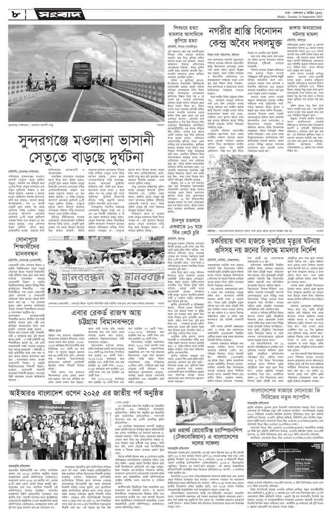 মঙ্গলবার, ১৬ সেপ্টেম্বর ২০২৫, ১ আশ্বিন ১৪৩২, ২২ রবিউল আওয়াল ১৪৪৭