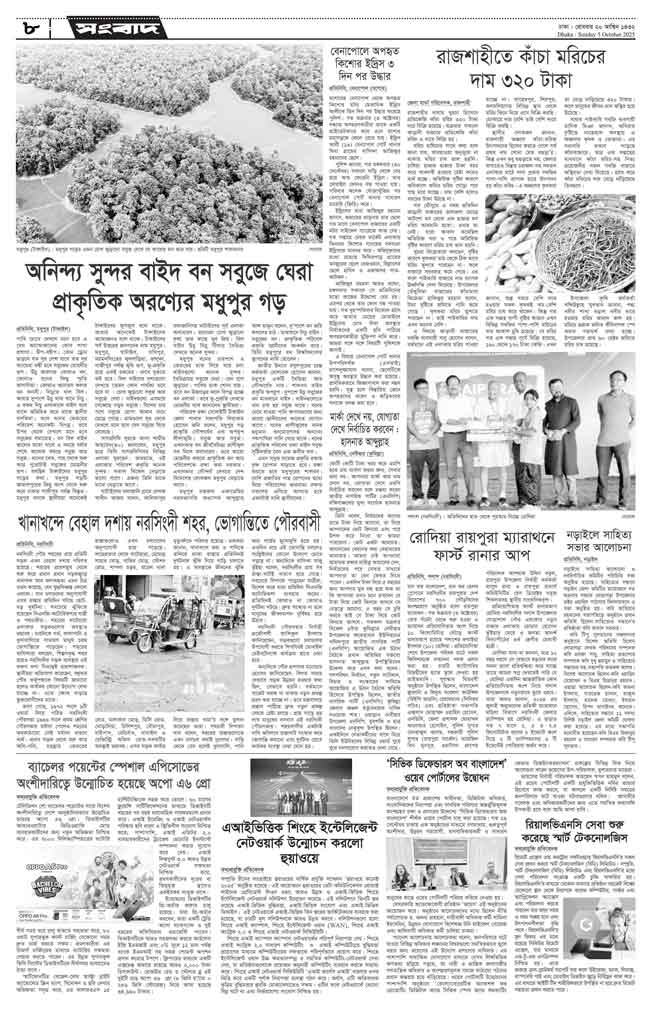 রবিবার, ০৫ অক্টোবর ২০২৫, ২৯ ভাদ্র ১৪৩২, ১২ রবিউস সানি ১৪৪৭