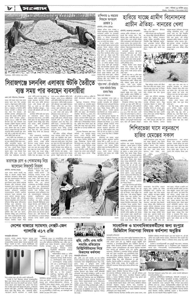 শনিবার, ০১ নভেম্বর ২০২৫, ৯ জমাদিউল আউয়াল ১৪৪৭, ১৬ কার্তিক ১৪৩২