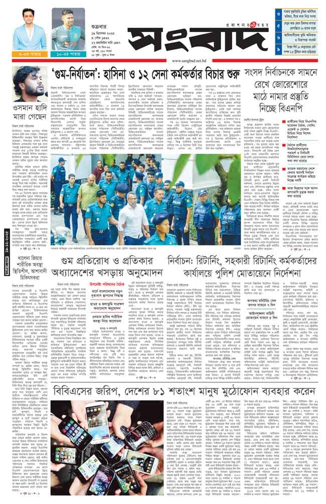শুক্রবার, ১৯ ডিসেম্বর ২০২৫, ০৪পৌষ, ১৪৩২ বঙ্গাব্দ, ২৭ শে জমাদিউস সানি, ১৪৪৭ হিজরি
