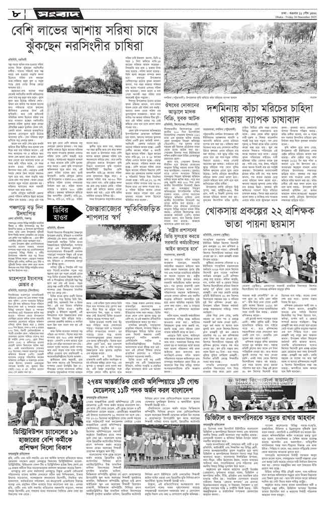 শুক্রবার, ২৬ ডিসেম্বর ২০২৫, ১১ পৌষ, ১৪৩২ বঙ্গাব্দ, ০৫ রজব , ১৪৪৭ হিজরি