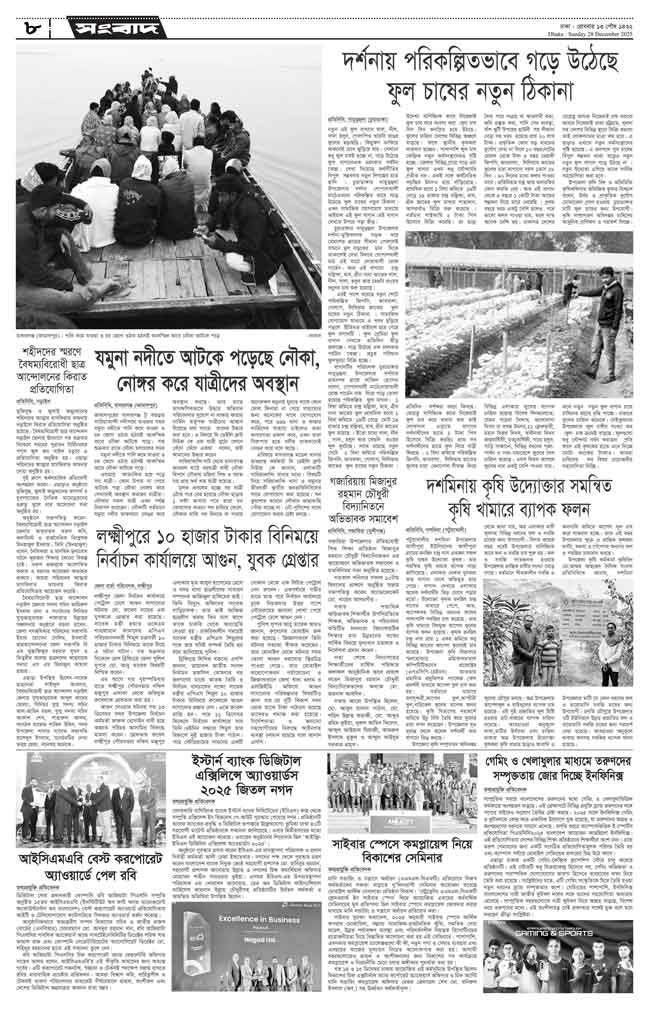 রবিবার, ২৮ ডিসেম্বর ২০২৫, ১৩ পৌষ, ১৪৩২ বঙ্গাব্দ, ০৭ রজব , ১৪৪৭ হিজরি