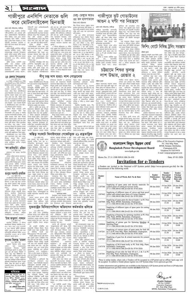 শুক্রবার, ০৯ জানুয়ারী ২০২৬, ২৫ পৌষ, ১৪৩২ বঙ্গাব্দ, ১৯ রজব , ১৪৪৭ হিজরি