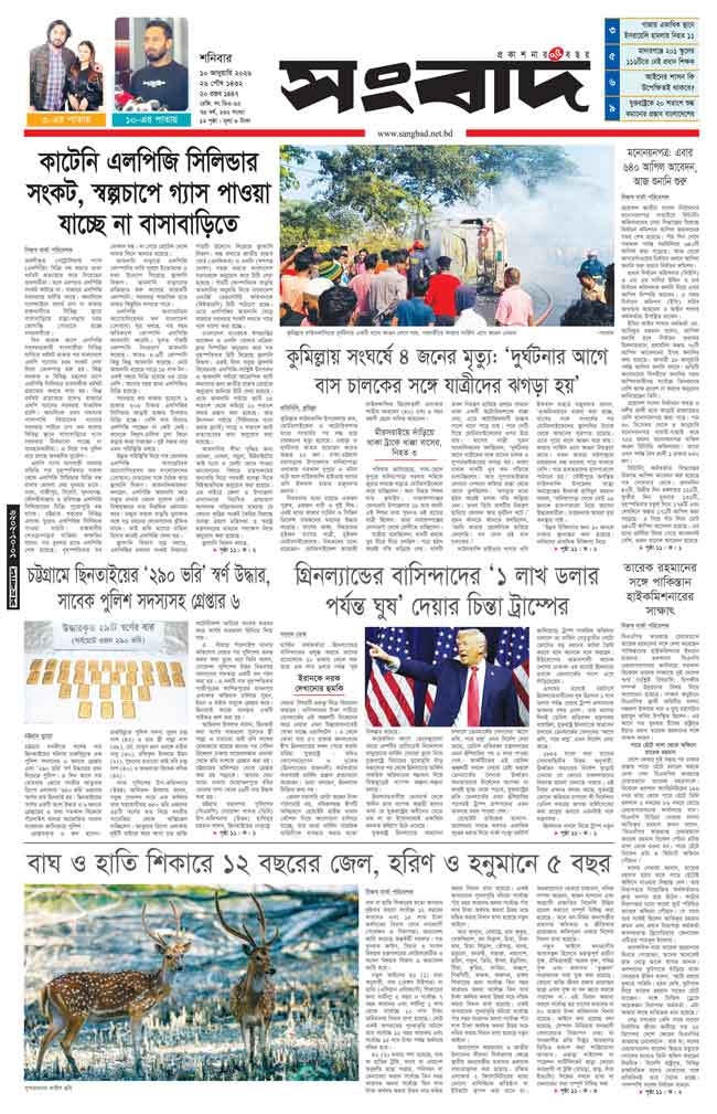 শনিবার, ১০ জানুয়ারী ২০২৬, ২৬ পৌষ, ১৪৩২ বঙ্গাব্দ, ২০ রজব , ১৪৪৭ হিজরি
