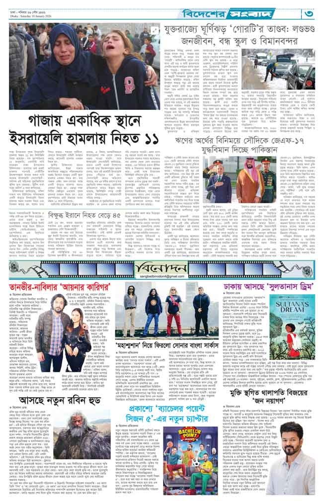 শনিবার, ১০ জানুয়ারী ২০২৬, ২৬ পৌষ, ১৪৩২ বঙ্গাব্দ, ২০ রজব , ১৪৪৭ হিজরি