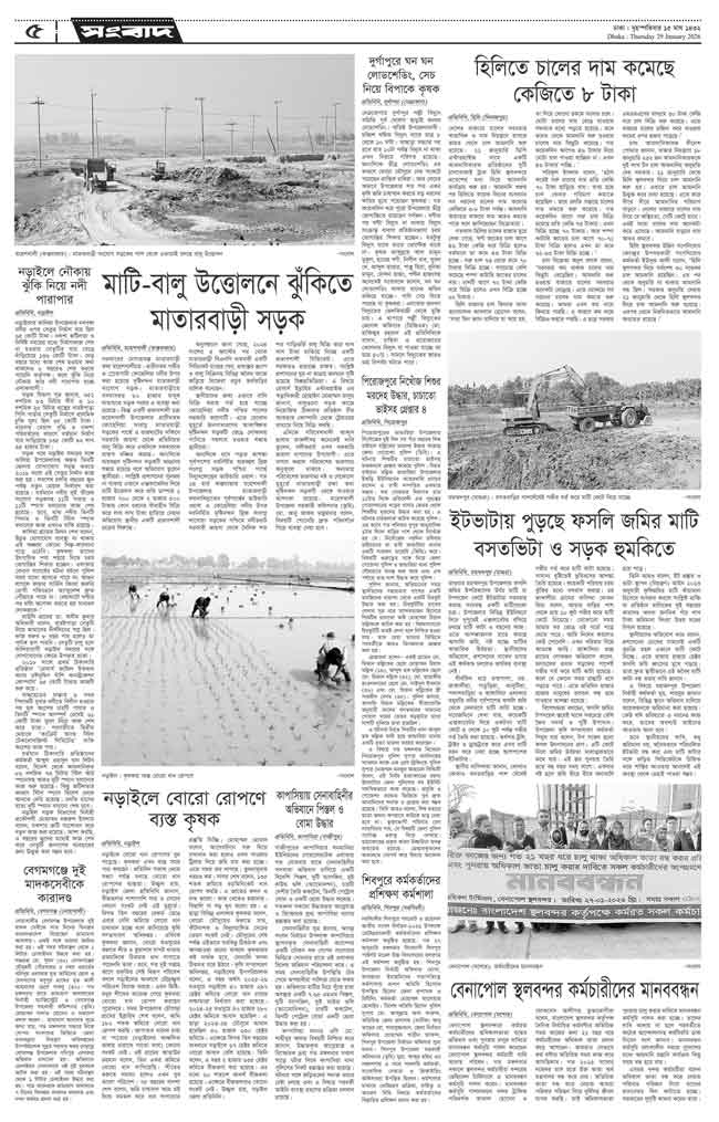 বৃহস্পতিবার, ২৯ জানুয়ারী ২০২৬, ১৫ মাঘ , ১৪৩২ বঙ্গাব্দ, ৯ শাবান , ১৪৪৭ হিজরি