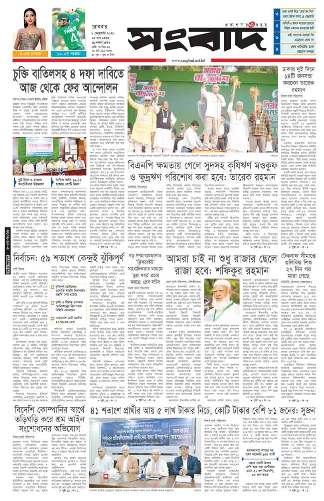 রবিবার, ০৮ ফেব্রুয়ারী ২০২৬, ২৫ মাঘ , ১৪৩২ বঙ্গাব্দ, ১৯ শাবান , ১৪৪৭ হিজরি