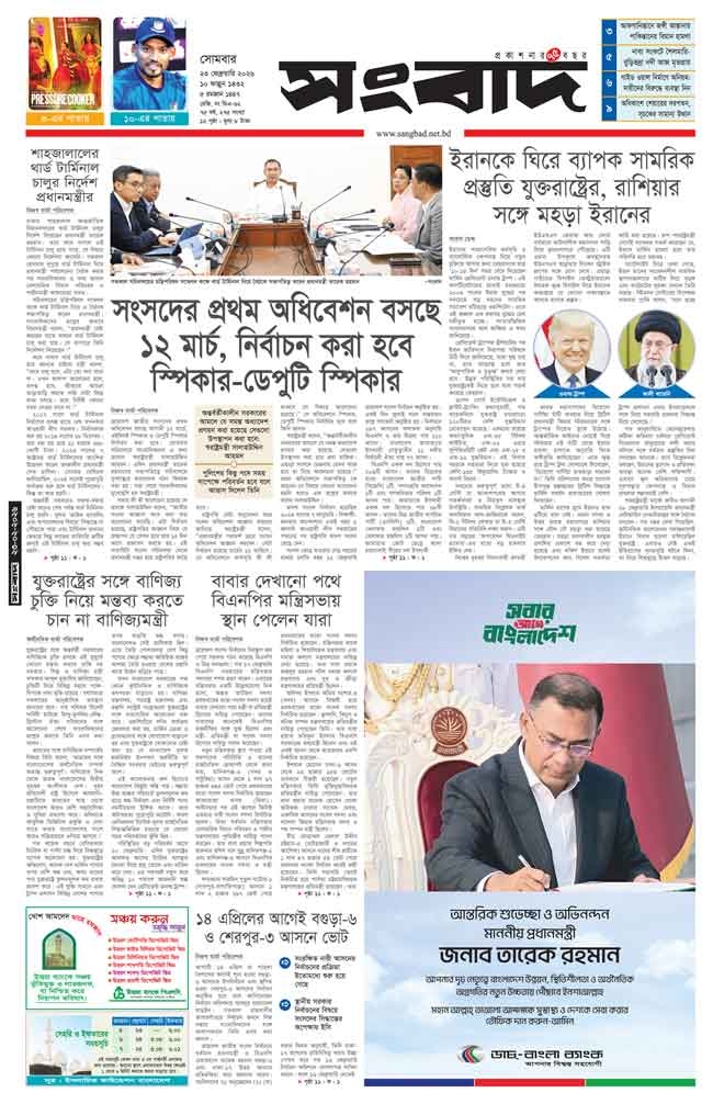 সোমবার, ২৩ ফেব্রুয়ারী ২০২৬, ৯ ফাল্গুন , ১৪৩২ বঙ্গাব্দ, ৫ রমজান , ১৪৪৭ হিজরি