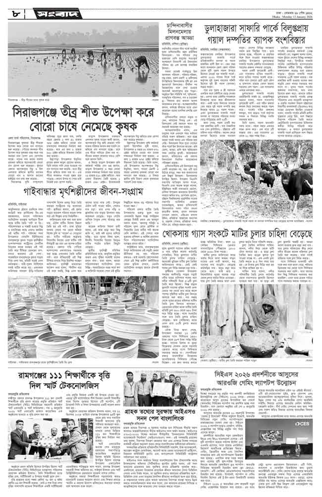 মঙ্গলবার, ১৩ জানুয়ারী ২০২৬, ২৯ পৌষ, ১৪৩২ বঙ্গাব্দ, ২৩ রজব , ১৪৪৭ হিজরি