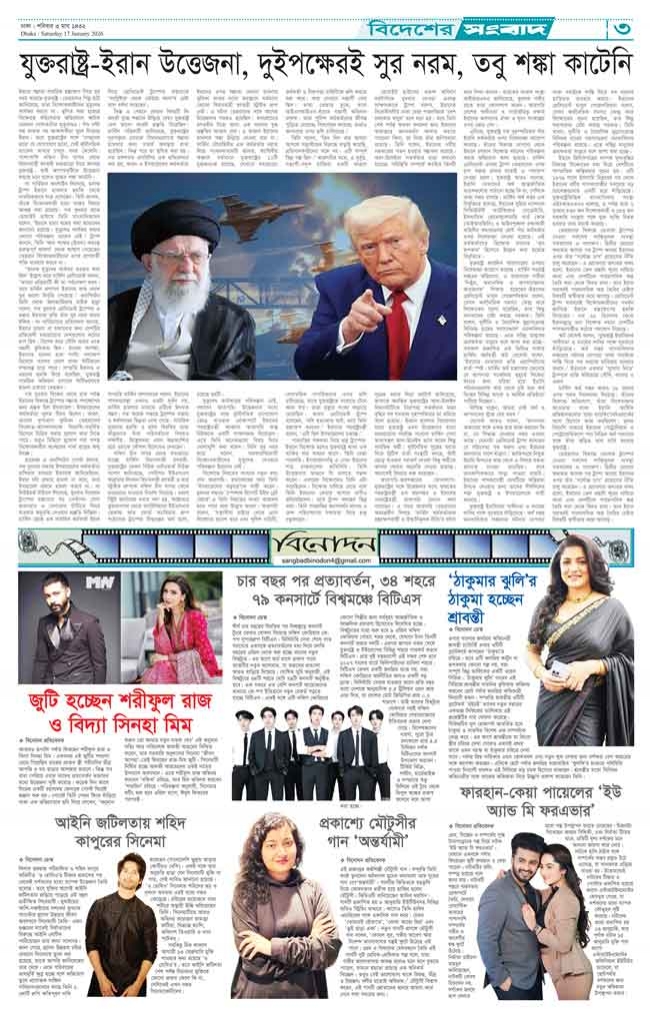শনিবার, ১৭ জানুয়ারী ২০২৬, ০৩ মাঘ , ১৪৩২ বঙ্গাব্দ, ২৭ রজব , ১৪৪৭ হিজরি