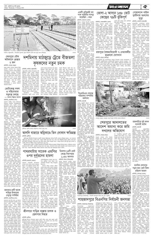 বুধবার, ১১ ফেব্রুয়ারী ২০২৬, ২৮ মাঘ , ১৪৩২ বঙ্গাব্দ, ২২ শাবান , ১৪৪৭ হিজরি