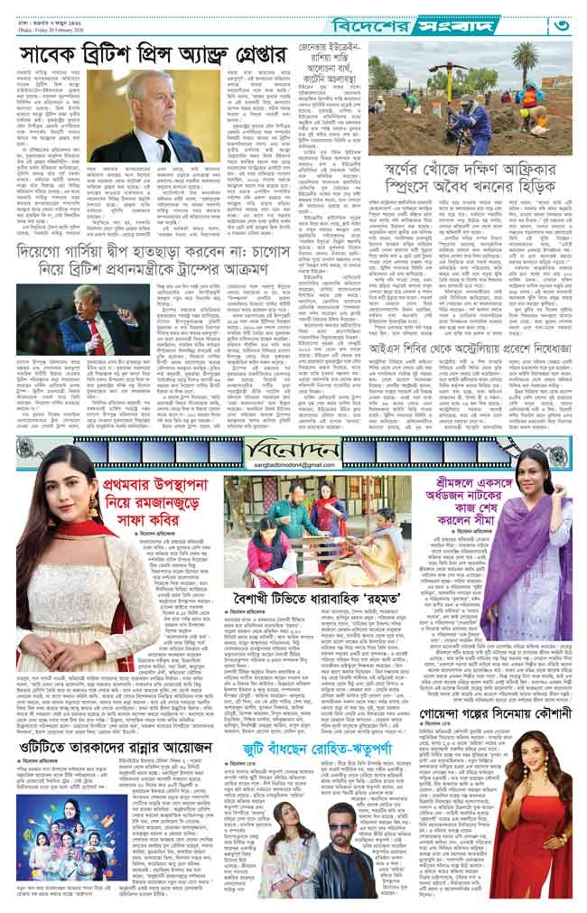 শুক্রবার, ২০ ফেব্রুয়ারী ২০২৬, ৬ ফাল্গুন , ১৪৩২ বঙ্গাব্দ, ২ রমজান , ১৪৪৭ হিজরি